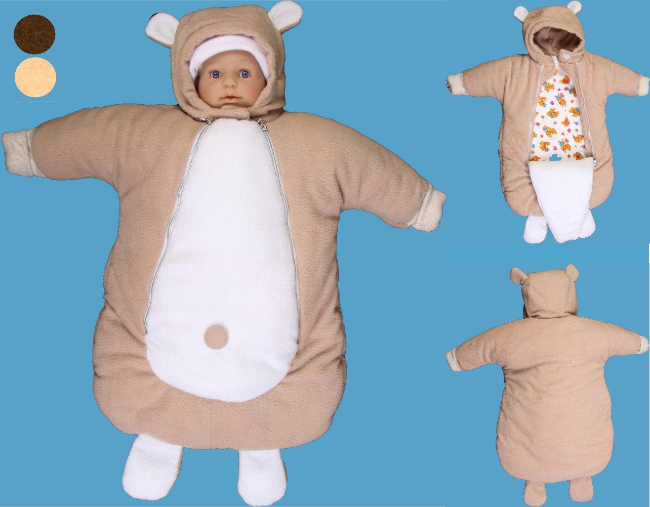 Флисовый конверт мишка выпускается в коричневом, бежевом и белом цвете (животик и отделки всегда белые).