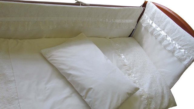 Описание: 1.Борт раздельный на молнии 4 части высота 45 длина 120 2.Одеяло 110х140 3.Подушка 40х60 4.Простыня на резинке 120х60 5.Наволочка 40х60 6.Пододеяльник на молнии 147х112