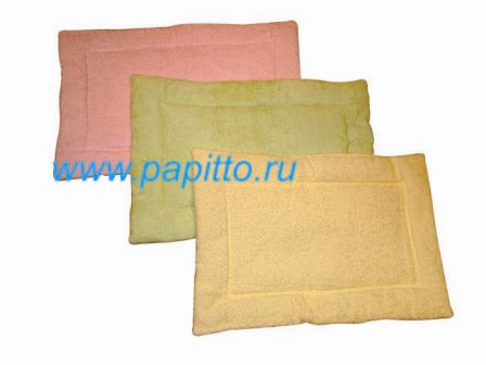 Описание: одна сторона подушки махровая, вторая тканевая хлопок,наполнитель синтепон простегана по периметру